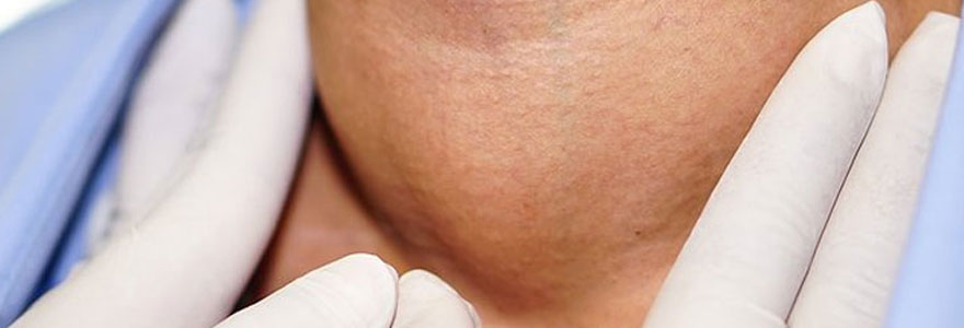 Goiter: Enlargement of the thyroid gland, which may cause a visible swelling at the base of the neck.